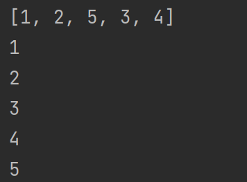 우선순위는 숫자가 작을 수록 우선순위가 높기 때문에 1, 2, 3, 4, 5 순으로 하나씩 출력된 것을 확인할 수 있다.