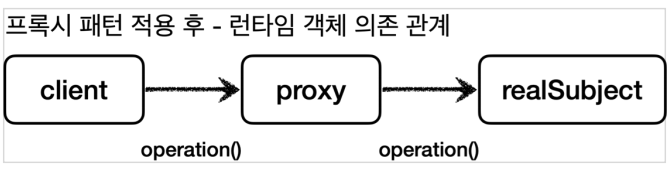public class ProxyPatternClient { private Subject subject; public ProxyPatternClient(Subject subject) { this.subject = subject; } public void execute() { subject.operation(); } }클라이언트는 execute()를 통해 subject의 operation() 메서드를 실행한다.