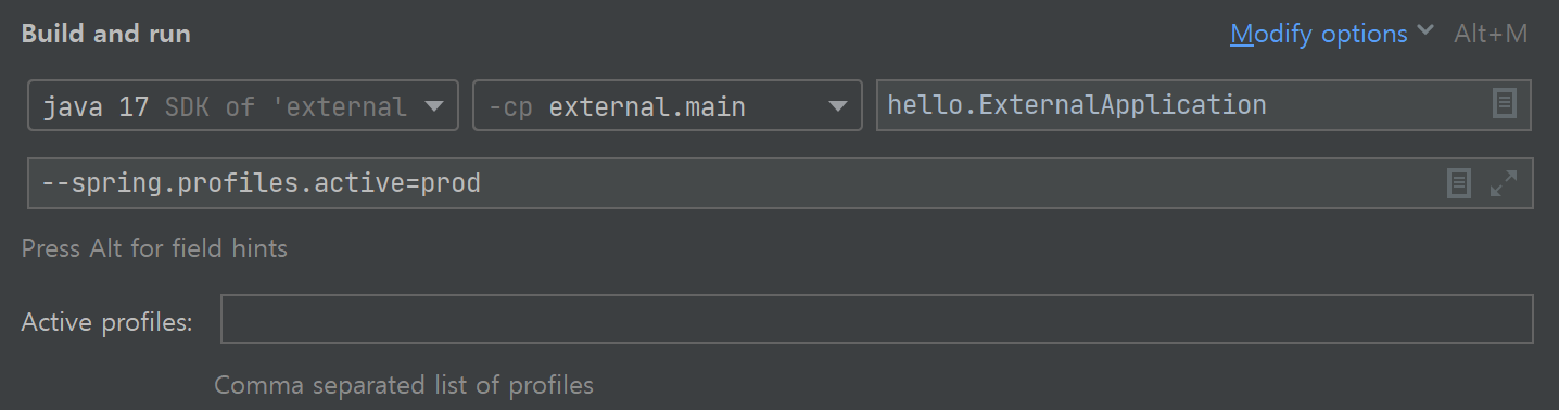 spring.profiles.active 외부 설정에 값을 넣으면 해당 프로필을 사용한다고 판단한다.