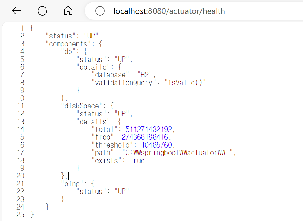 헬스 정보는 애플리케이션이 요청에 응답할 수 있는 상황인지를 알려주는 것을 넘어서 데이터베이스, 디스크 사용량같은 다양한 정보도 함께 제공해준다.