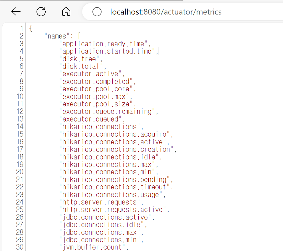 액츄에이터의 엔드포인트중에 metrics가 존재한다.