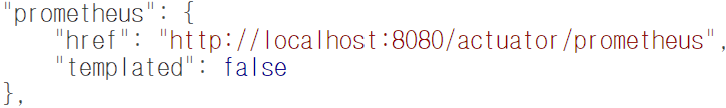 프로메테우스는 localhost:8080/actuator/metrics의 JSON 형식은 이해하지 못한다.