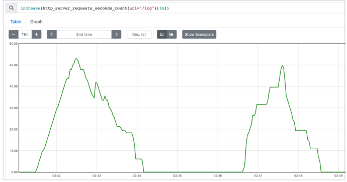 카운터같은 경우에는 그래프를 그냥 표현하기보다는 increase(), rate() 등을 사용해서 표현하는 것이 훨씬 좋다.