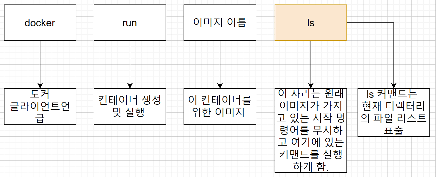 사진 : 인프런 강의 - 따라하며 배우는 도커와 CI환경 docker run <이미지> 뒤에 추가 명령어를 입력할 수 있는데, 추가 명령어를 입력하면 원래 이미지가 가지고 있는 시작 명령어 대신 추가 명령어의 커맨드를 실행한다.