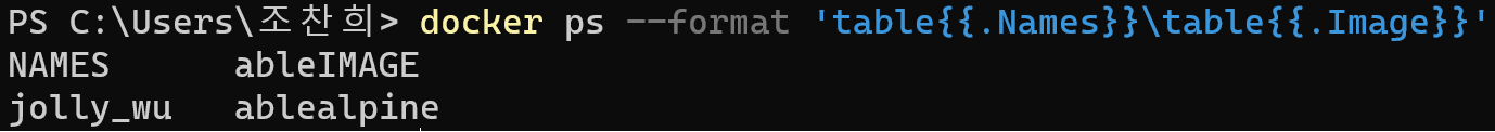 사진 : 인프런 강의 - 따라하며 배우는 도커와 CI환경 원하는 정보만 출력하기 위해서는 --format 메서드를 이용하면 된다.
