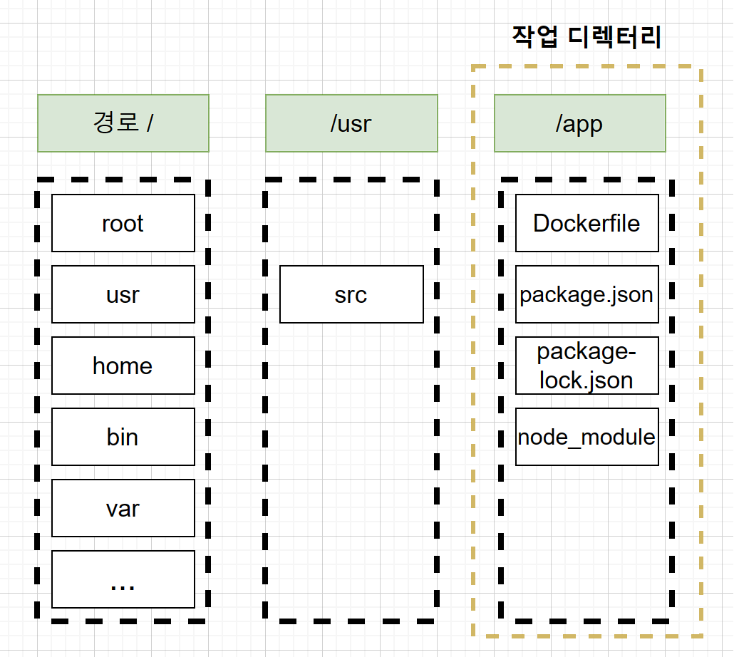 WORKDIR의 정의를 먼저 알아보면 이미지 안에서 어플리케이션 소스 코드를 갖고 있을 디렉토리를 생성하는 것이다.