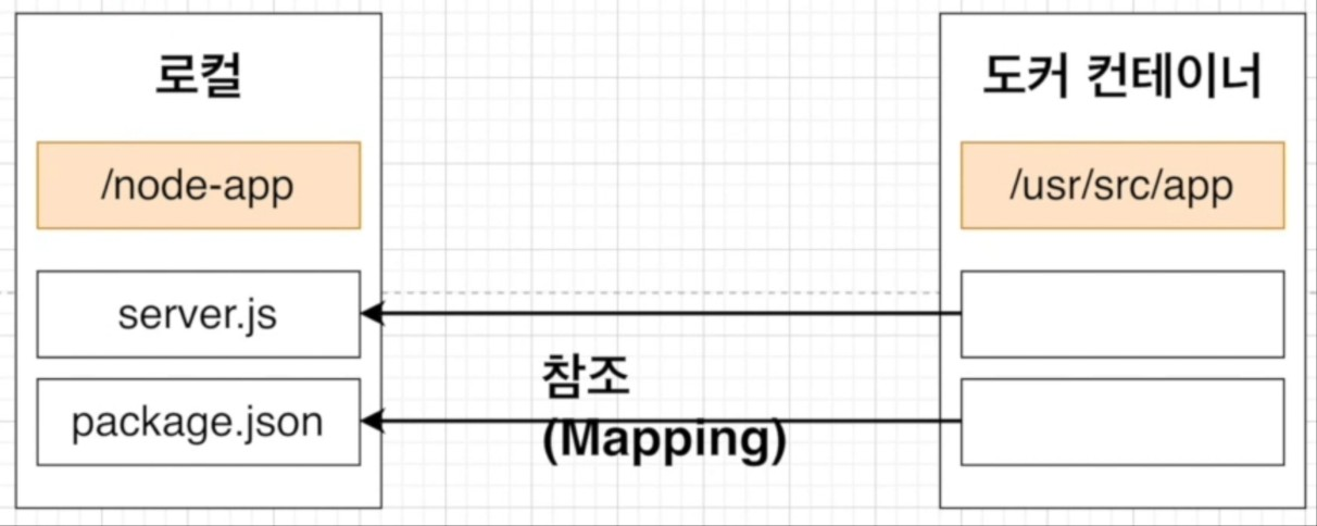 - -v ${PWD}:/usr/src/app : 해당 경로에 있는 디렉토리 혹은 파일을 /usr/src/app 경로에서 참조하라는 명령어