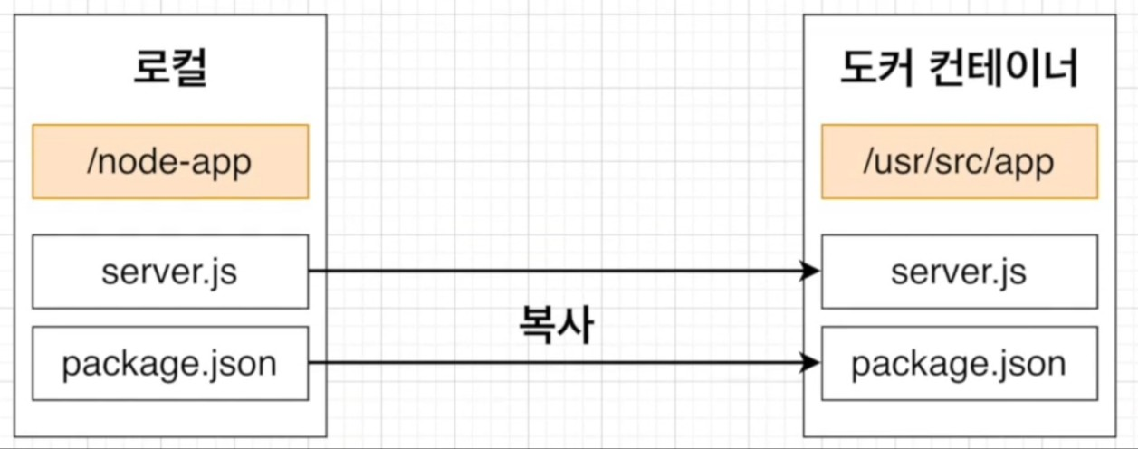사진 : 인프런 강의 - 따라하며 배우는 도커와 CI환경 위의 사진을 보면 COPY가 2번 이루어진다. 첫 번째 COPY는 package.json을 받아와서 종속성 부분의 파일만 복사하고, 두 번째 COPY에서 전체를 복사한다.