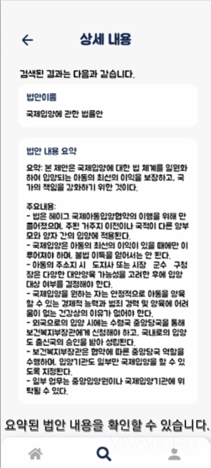 예선 보고서 제출 때 찍은 실제 영상의 캡쳐 사진입니다. 사용자가 입력한 상황에 따라 법안을 추천 및 요약해줍니다. ai 개발을 하면서..
