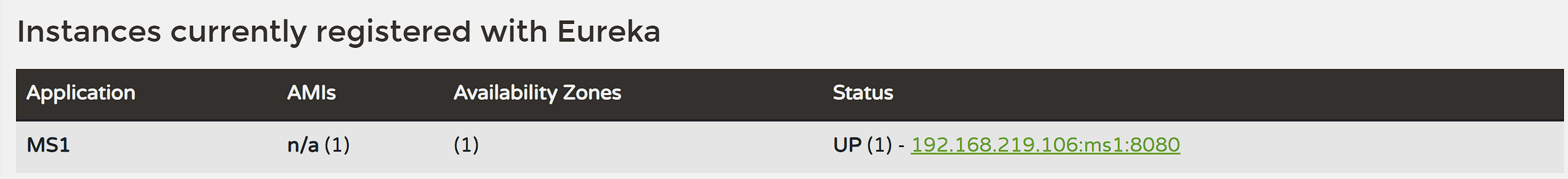 이렇게 설정을 마치고 프로그램을 실행시켜주면, ms1이라는 이름으로 유레카 서버에 뜨게 된다.