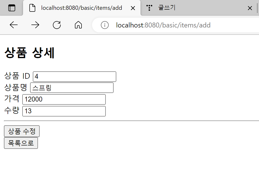 url이 /basic/items/add로 바뀌지 않았는데, GETMapping이 아닌 POSTMapping으로 연결된 것이다.