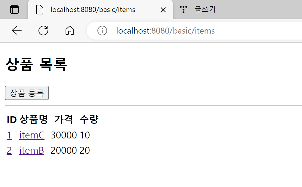 판매 여부 체크박스 (0) 2023.02.19 상품 웹 사이트 - 리다이렉트 (0) 2023.02.16 상품 웹 사이트 - 상품 등록 (0) 2023.02.16 상품 웹 사이트 - 상품 상세 페이지 (0) 2023.02.16 상품 웹 사이트 - 타임리프 (아이템 목록) (0) 2023.02.16