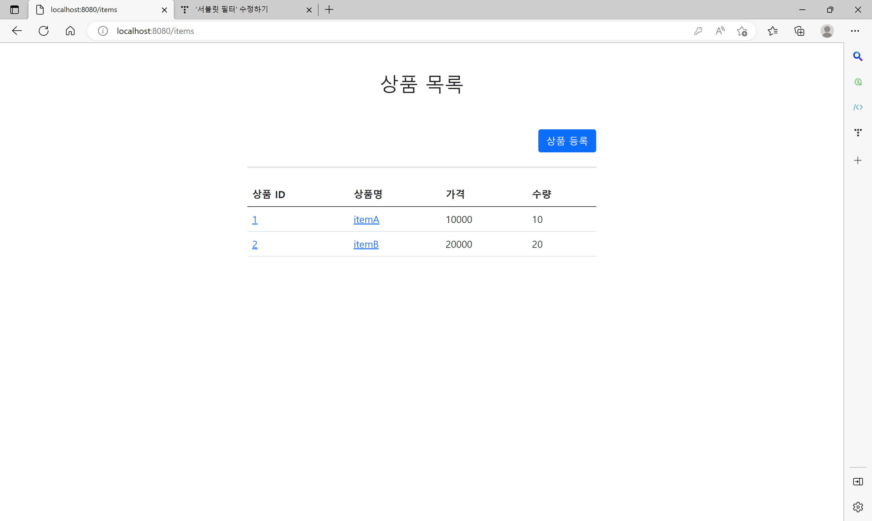 API 예외처리 - HandlerExceptionResolver (0) 2023.03.05 스프링 부트의 오류 페이지 (0) 2023.03.03 서블릿 필터 (0) 2023.03.01 서블릿 Http 세션 (0) 2023.02.28 로그인 페이지 만들기 (0) 2023.02.28