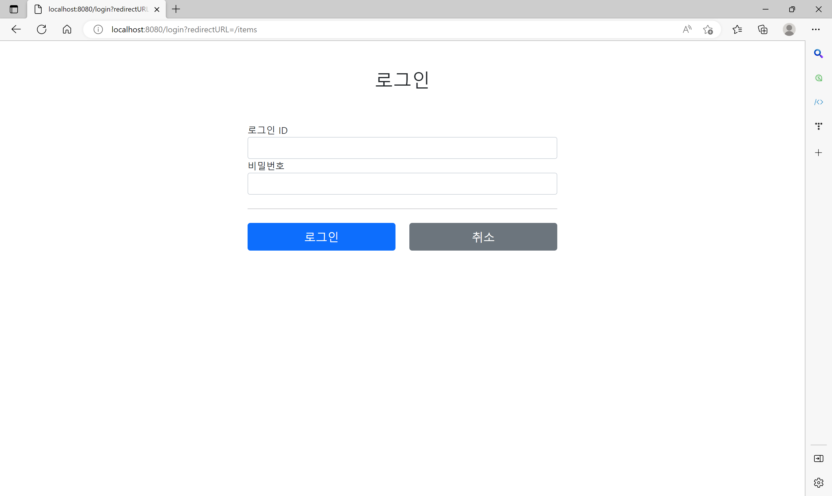 위에 url을 보면 redirectURL=/items로 남겨져 있다.