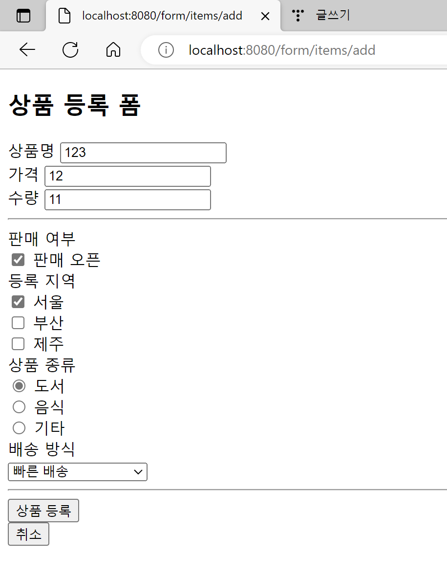 이제 상품 등록 폼에서 배송 방식도 선택 할 수 있다.